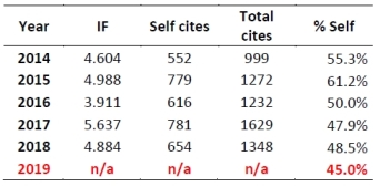 Percentage of FSIGEN self cites 2014-2019- Letter of appeal by the Editors, sent to Clarivate on July 3, 2020